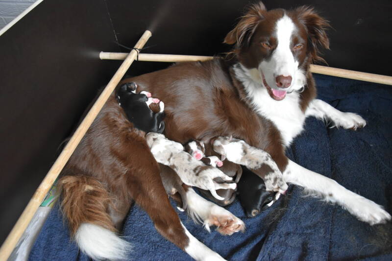 Om half tien zag ik de eerste perswee. Om 17.30 de laatste. Yuka heeft een dag nodig gehad om acht pups uit te broeden. Op haar eigen tempo. Geleid door haar instinct. Het waren niet haar gedachten die in de weg zaten. Het was mijn behoefte aan duidelijkheid. Aan planning en aan structuur.