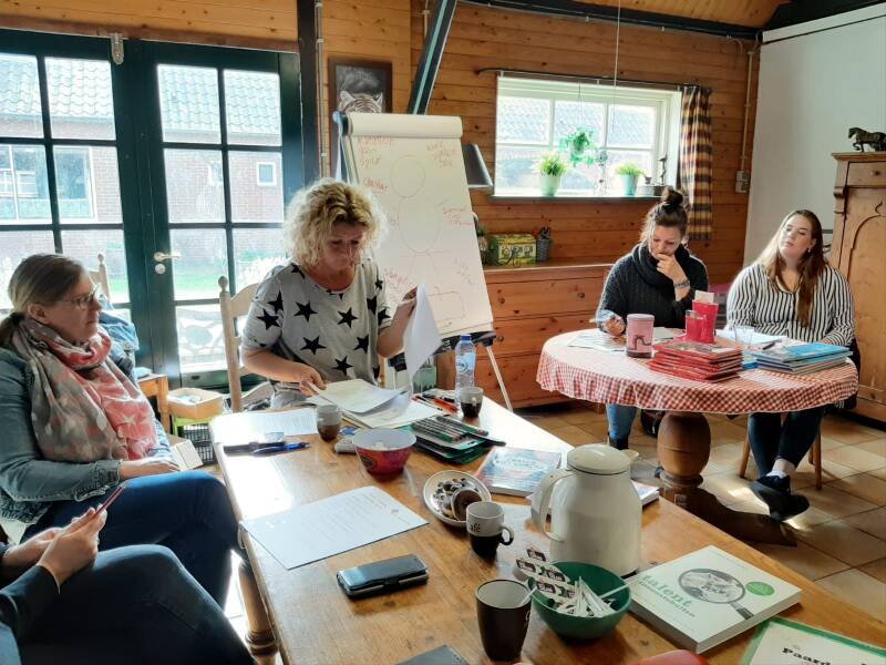 De insteek om met elkaar te leren en brainstormen over omgaan met kinderen tijdens het begeleiden van kinderen, paarden en ouders sprak haar zo aan dat er spontaan een uitnodiging mijn richting op kwam.