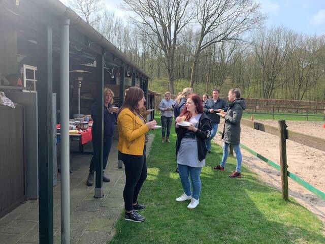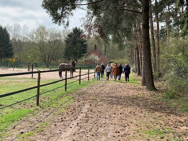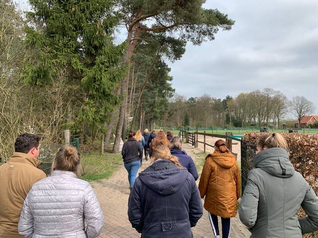 Zogezegd, zo gedaan en gisteren was Stal Westerhof dan ook gast-locatie van de eerste nascholing ‘Lesgeven aan tieners’ van Kinderen leren paardrijden. We hebben José leren kennen als een ervaren gastvrouw. "Net als bij ponykampen", legde José uit, toen ze ons buiten een tafel vol lekkere dingen serveerde. Een heerlijke lunch en daarna een gezellige wandeling door het bos. Direct vanaf haar stekkie het bos in… Wauw, wat boft José met deze locatie!
