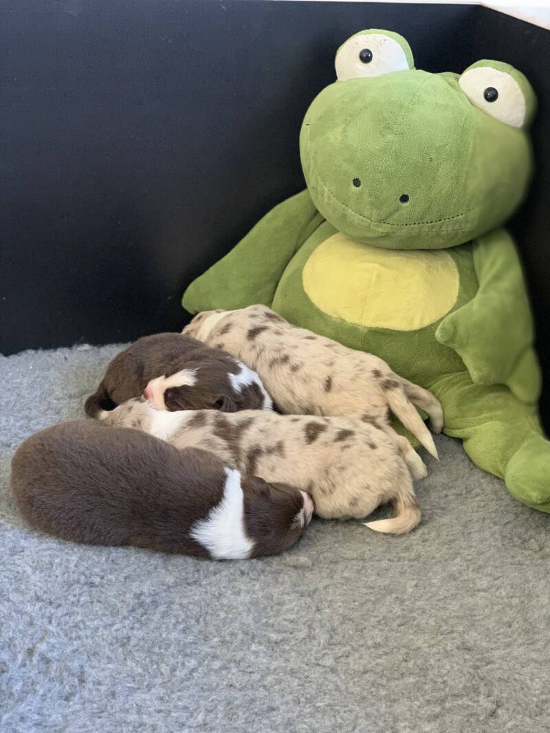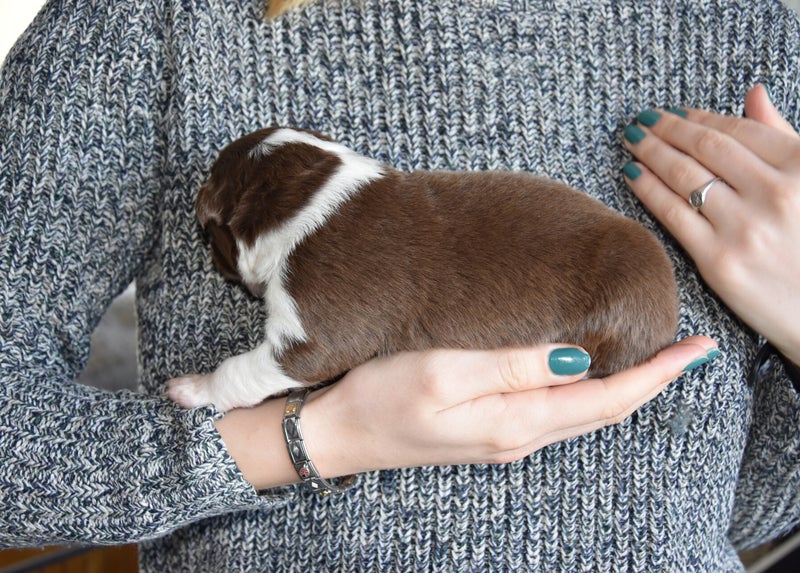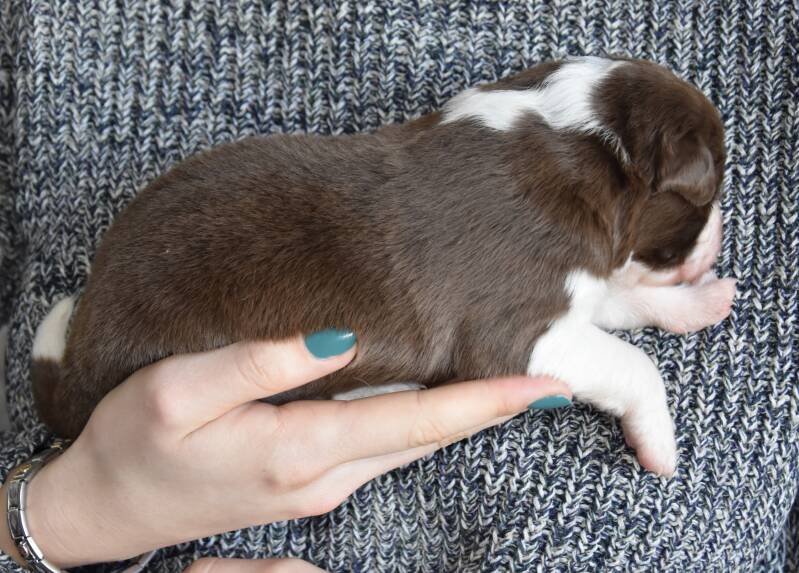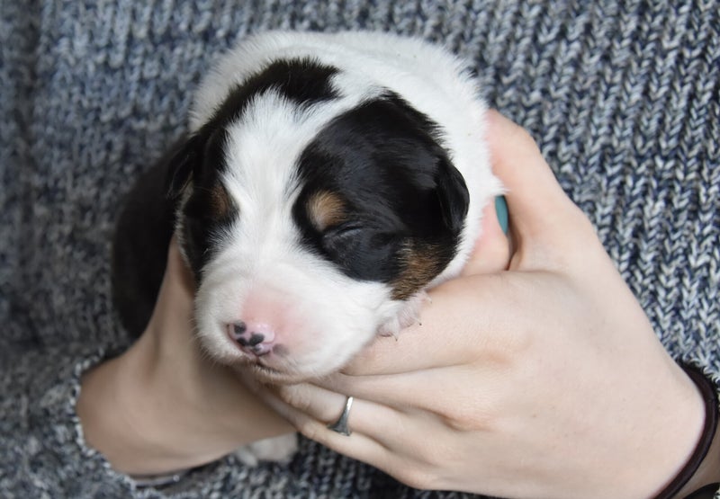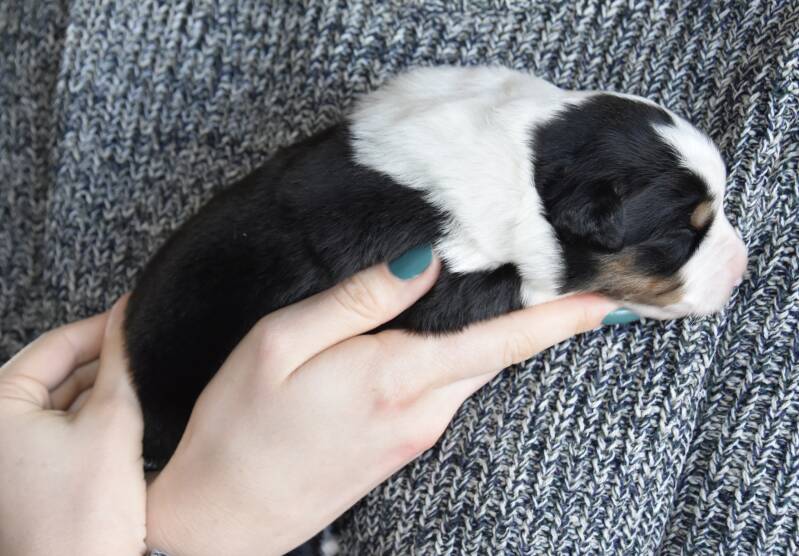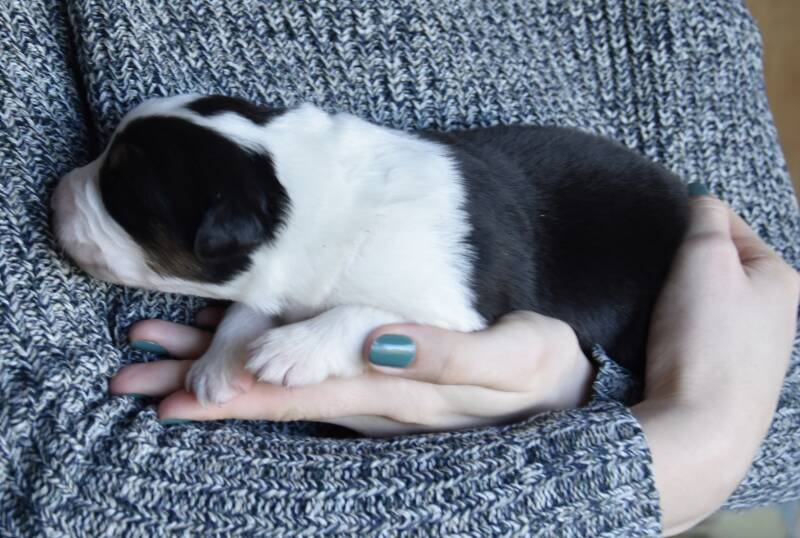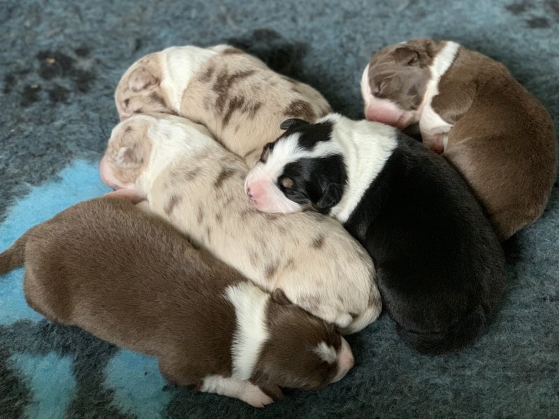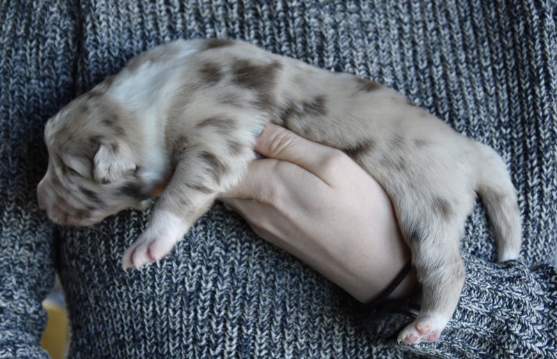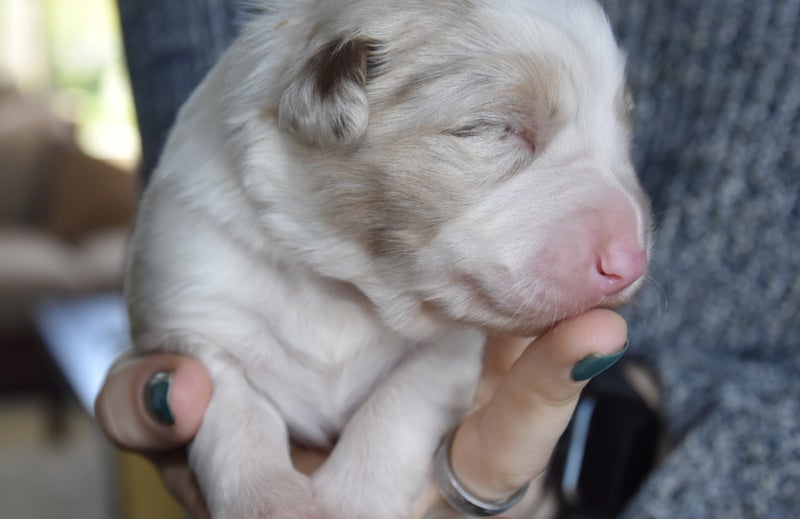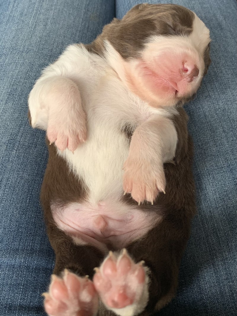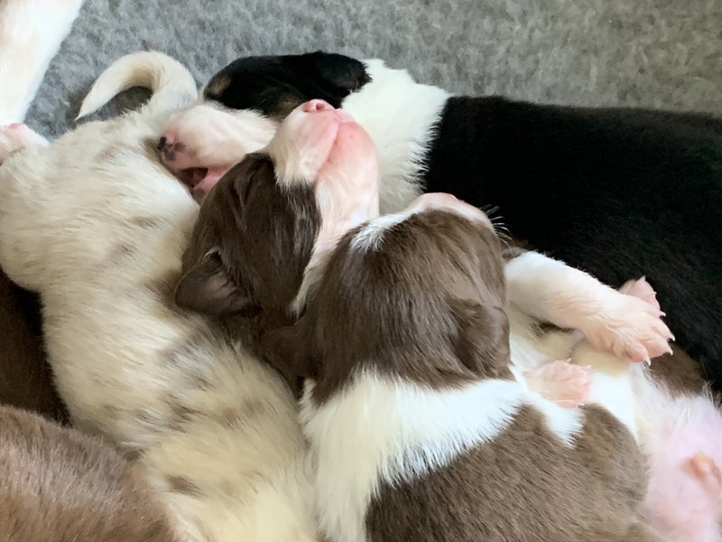 Wat gaat het snel allemaal, dit weekend is het alweer twee weken geleden dat de pups zijn geboren. Een beetje cliché maar erg waar. Behalve slapen en eten kunnen ze nu ook al een klein beetje (wiebelig) lopen, in de poephouding staan, op elkaars oren sabbelen en kan het kijken beginnen. Bij alle pups zijn de oogjes nu volledig open. Het grappige is dat de wereld gelijk meer spannend is dan voorheen. Zodra ze worden opgetild en wij ze oppakken, beginnen ze nu te piepen. We weten natuurlijk niet precies wat ze precies zien, maar dat ze registreren dan het anders is dan in de kist, bij elkaar of bij mama is duidelijk. Gelukkig went het snel en zullen onze handen snel behoren tot een veilige omgeving. Een hele simpele oplossing, maar gewoon vaak doen. Alles went tenslotte.