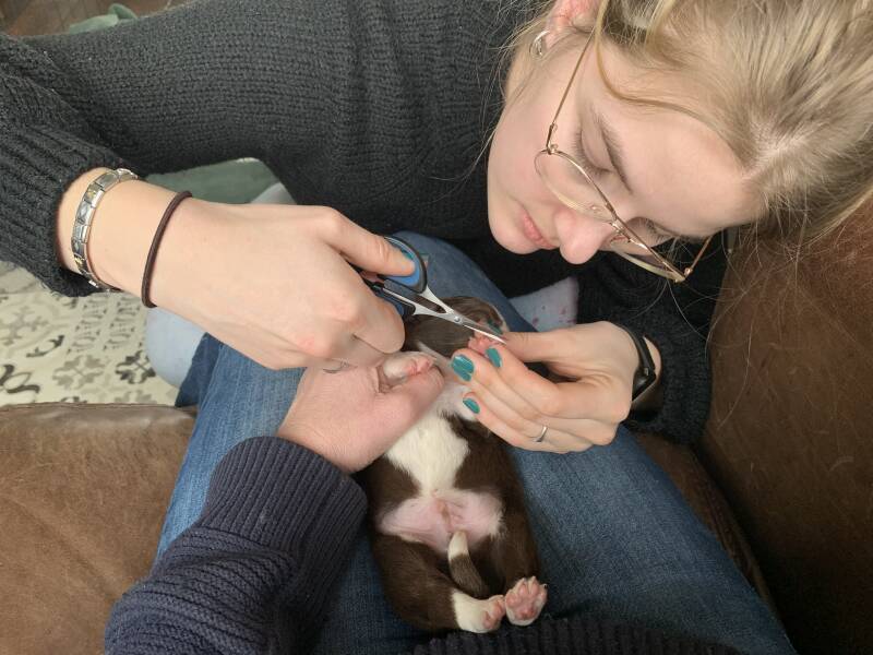 En nu hebben Fenne en ik een methode ontwikkeld die (deze keer) prima werkt. We sussen en knuffelen de molletjes op schoot in slaap en terwijl ze worden gekriebeld, knippen we heel voorzichtig het uiterste puntje van de ieniemienie nageltjes. Geen hondje die het merkt. Dus missie geslaagd!